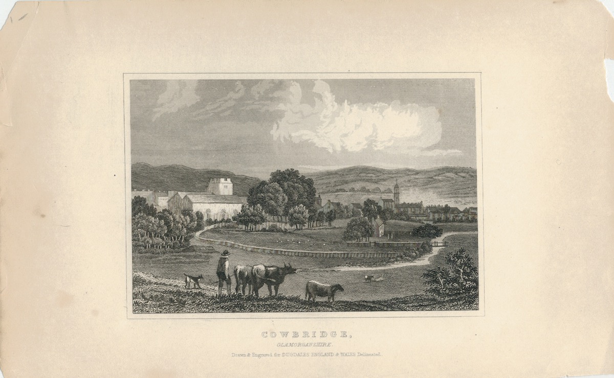Antique Engraving Print, Cowbridge, Glamorganshire, Dugdales, 1830 ca., credit Antiche Curiosità©