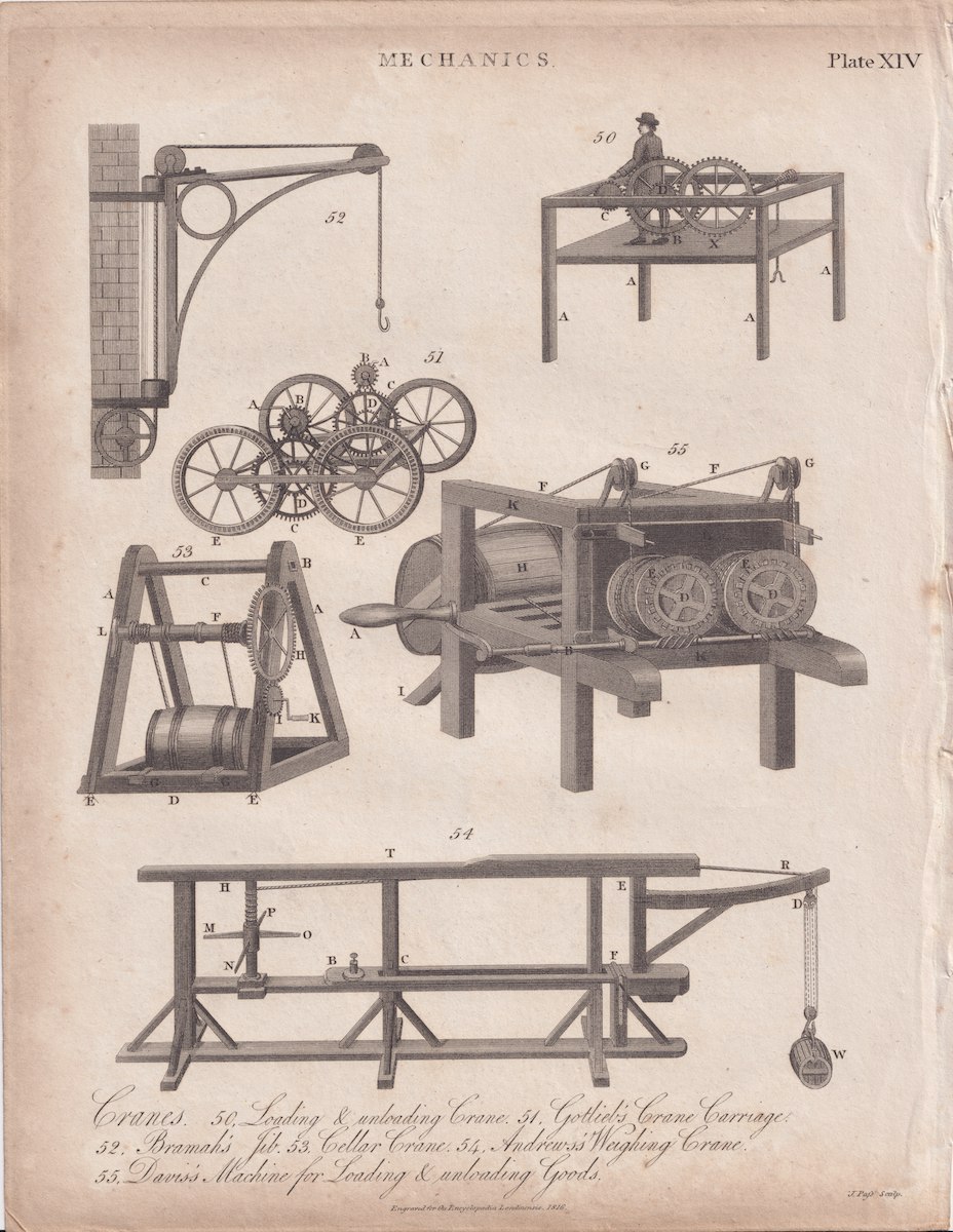 Antique Engraving print, Cranes, 1816, credit Antiche Curiosità©