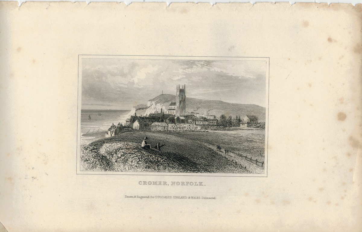 Antique Engraving Print, Cromer, Norfolk, Dugdales, 1840 ca., credit Antiche Curiosità©