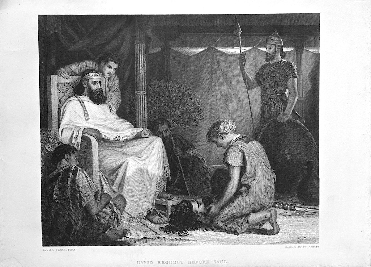 Antique Engraving Print, David Brought Before Saul, 1870, engraved by Samuel Smith after a picture by Louisa Starr, cm. 31,5 x 22,5.