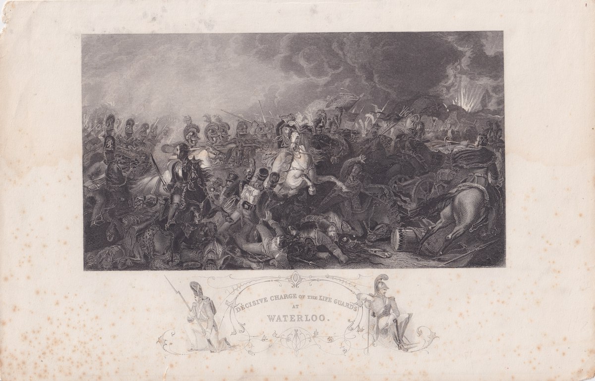 Antique Engraving Print, Decisive Charge of the Life Guards at Waterloo, 1840, credit Antiche Curiosità©