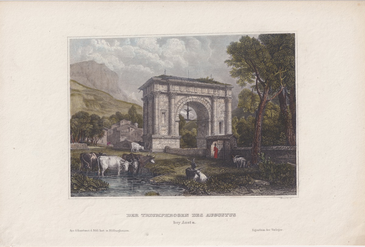 Antique Engraving Print, Der Triumphbogen des Augustus, 1841, credit Antiche Curiosità©