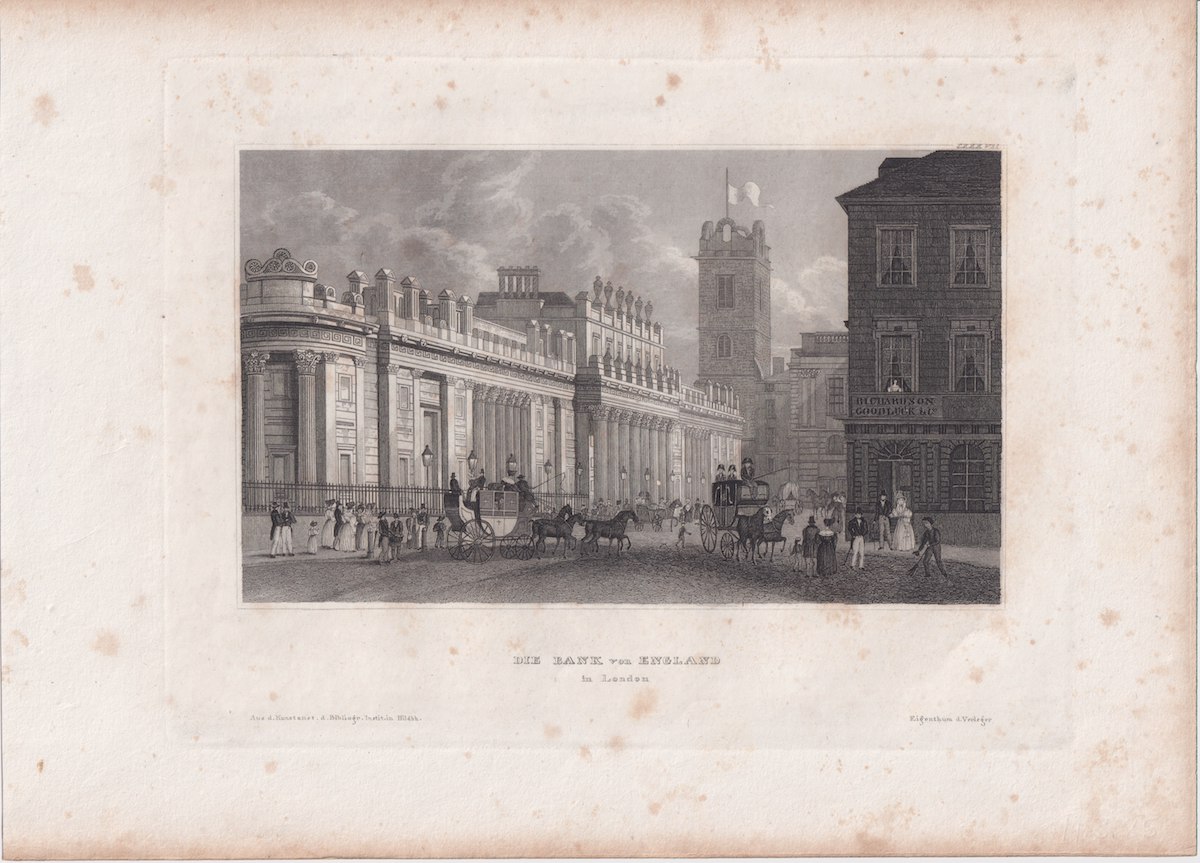 Antique Engraving Print, Die Bank von England, 1836, 25,4 x 18,5 cm.