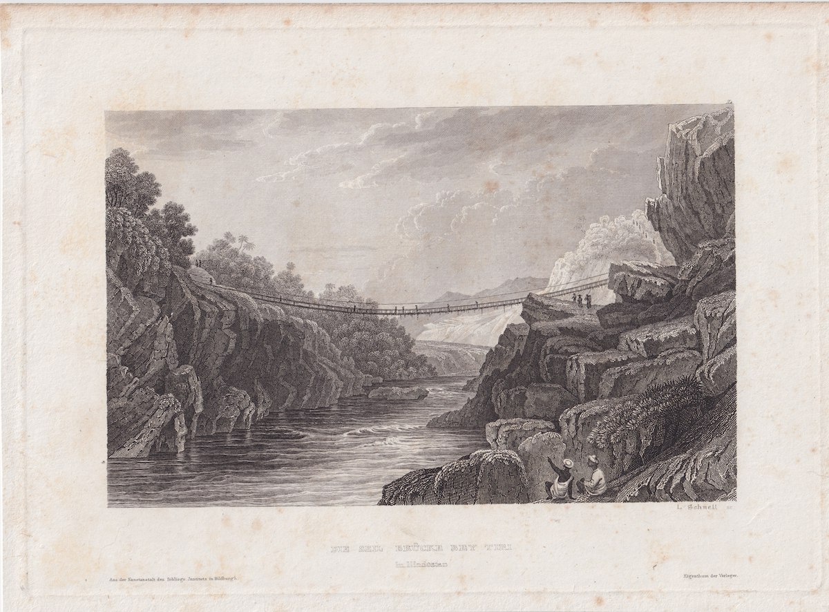 Antique Engraving Print, Die Seil Brucke Bey Tiri, 1840, credit Antiche Curiosità©
