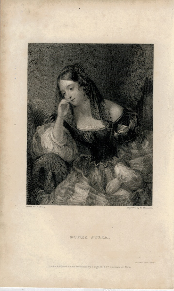 Antique Engraving Print, Donna Julia, 1833, engraved by H. Robinson, drawn by F. Stone, Longmann & Co, cm. 19 x 11,7.