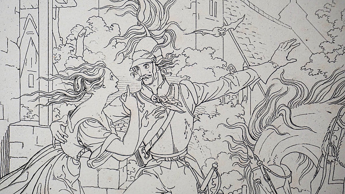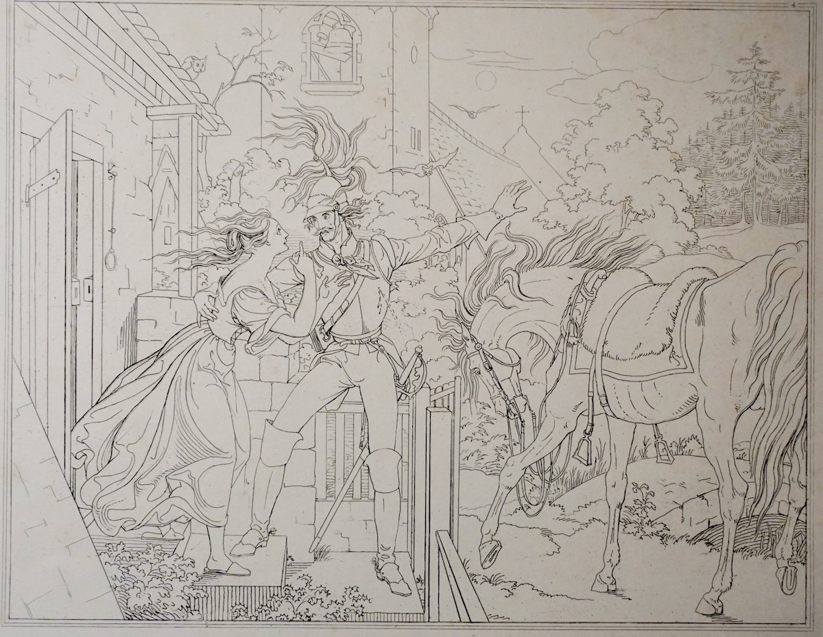 Antique Engraving Print, Doorstep conversation, 1820, credit Antiche Curiosità©