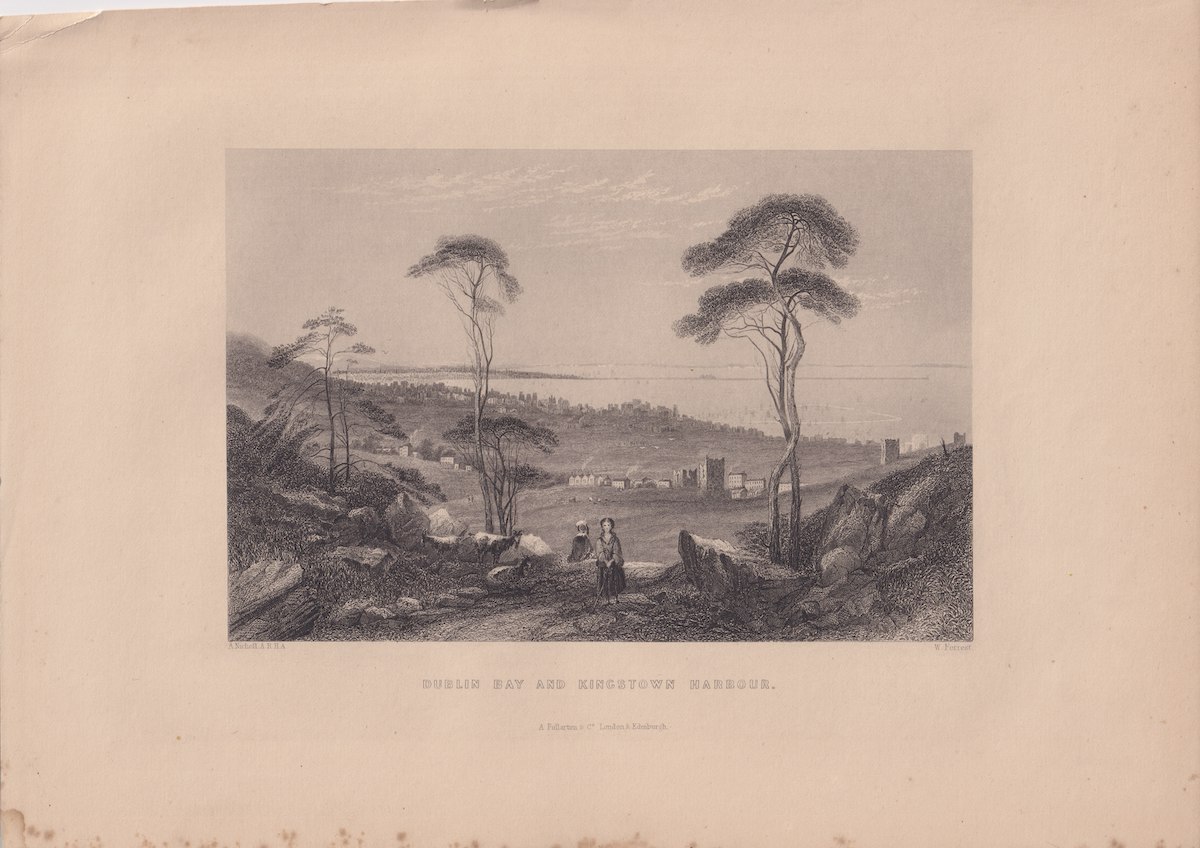 Antique Engraving Print, Dublin bay and Kingstown Harbour, 1830, credit Antiche Curiosità©