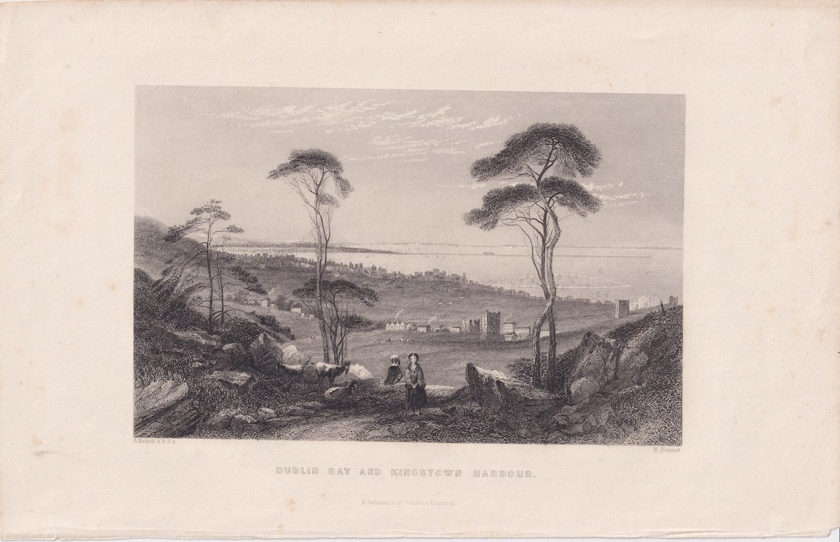 Antique Engraving Print, Dublin Bay and Kingstown Harbour, 1845, credit Antiche Curiosità©