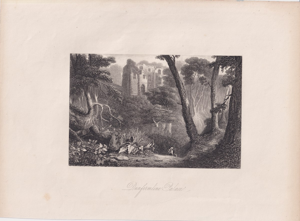 Antique Engraving Print, Dunfermline Palace, 1830, 27 x 20 cm.