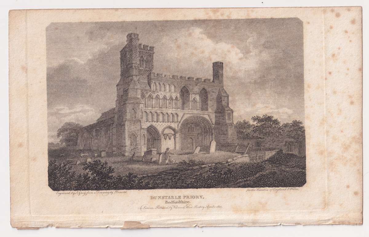 Antique Engraving Print, Dunstable Priory, 1801, credit Antiche Curiosità©