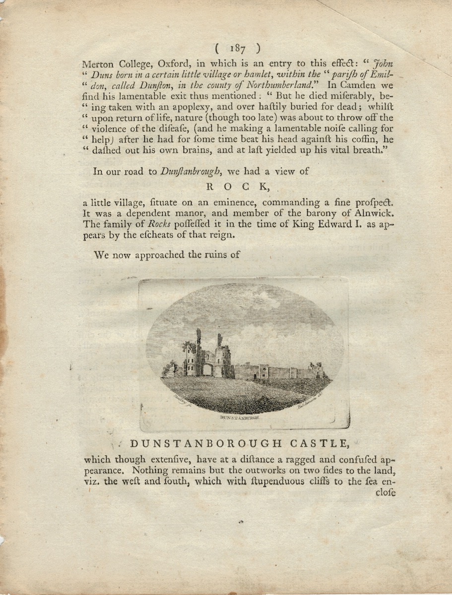 Antique Engraving Print, Dunstanborough Castle, 1750 ca. credit Antiche Curiosità©
