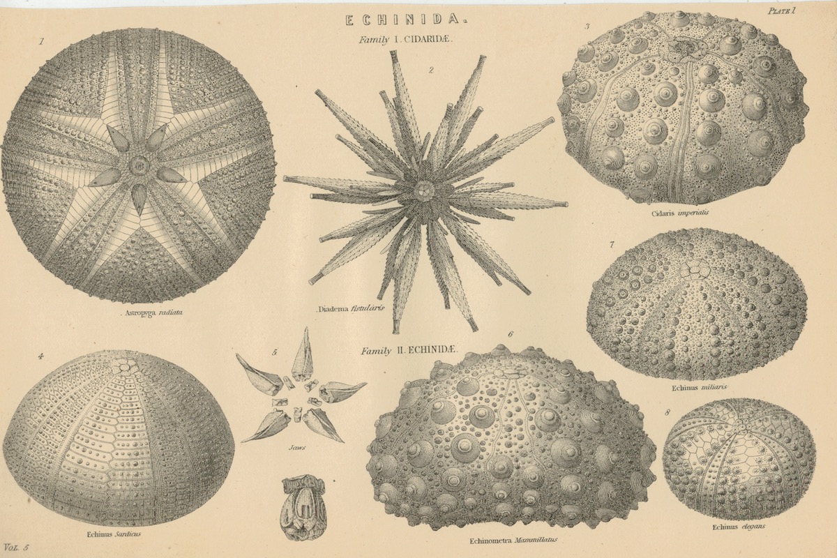 Antique Engraving Print, Echinida, 1870 ca., credit Antiche Curiosità©