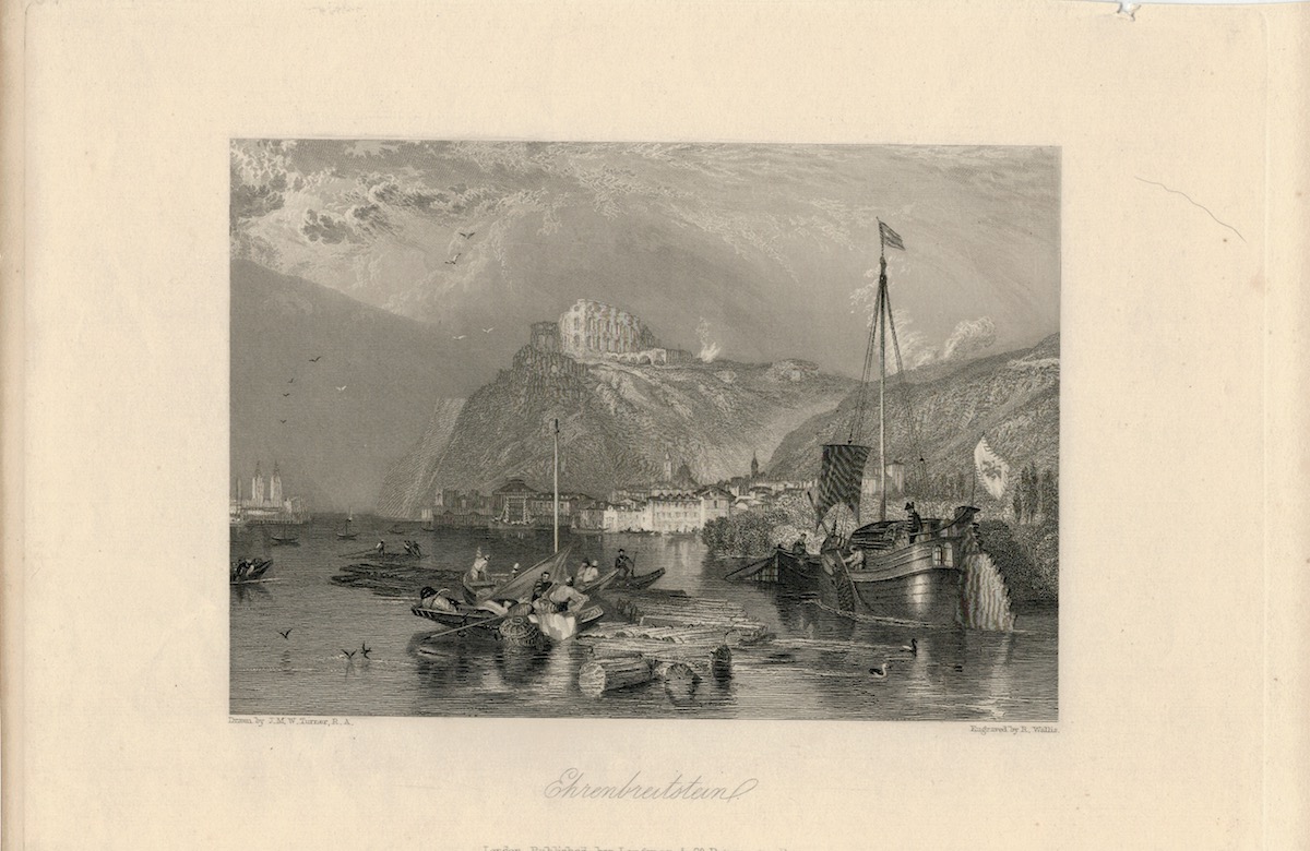 Antique Engraving Print, Ehrenbreitstein, 1836, credit Antiche Curiosità©
