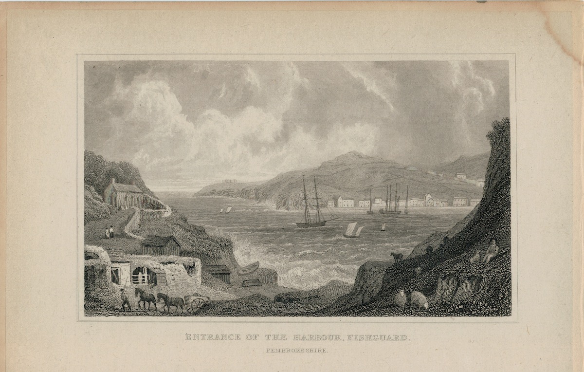 Antique Engraving Print, Entrance of the Harbour, Fishguard, 1831, credit Antiche Curiosità©