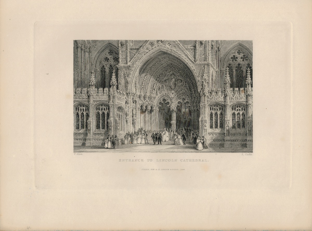 Antique Engraving Print, Entrance to Lincoln Cathedral, 1844, credit Antiche Curiosità©