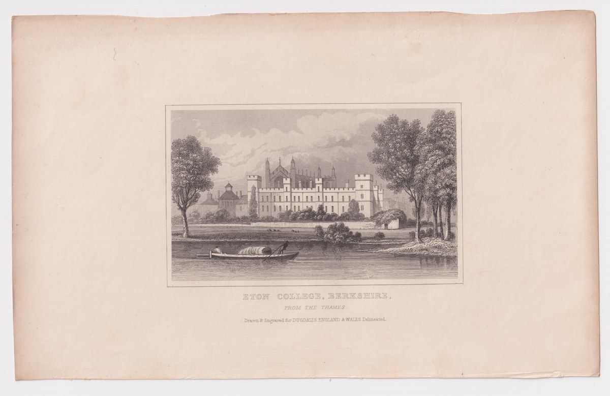 Antique Engraving Print, Eton College, Berkshire, 1845, credit Antiche Curiosità©