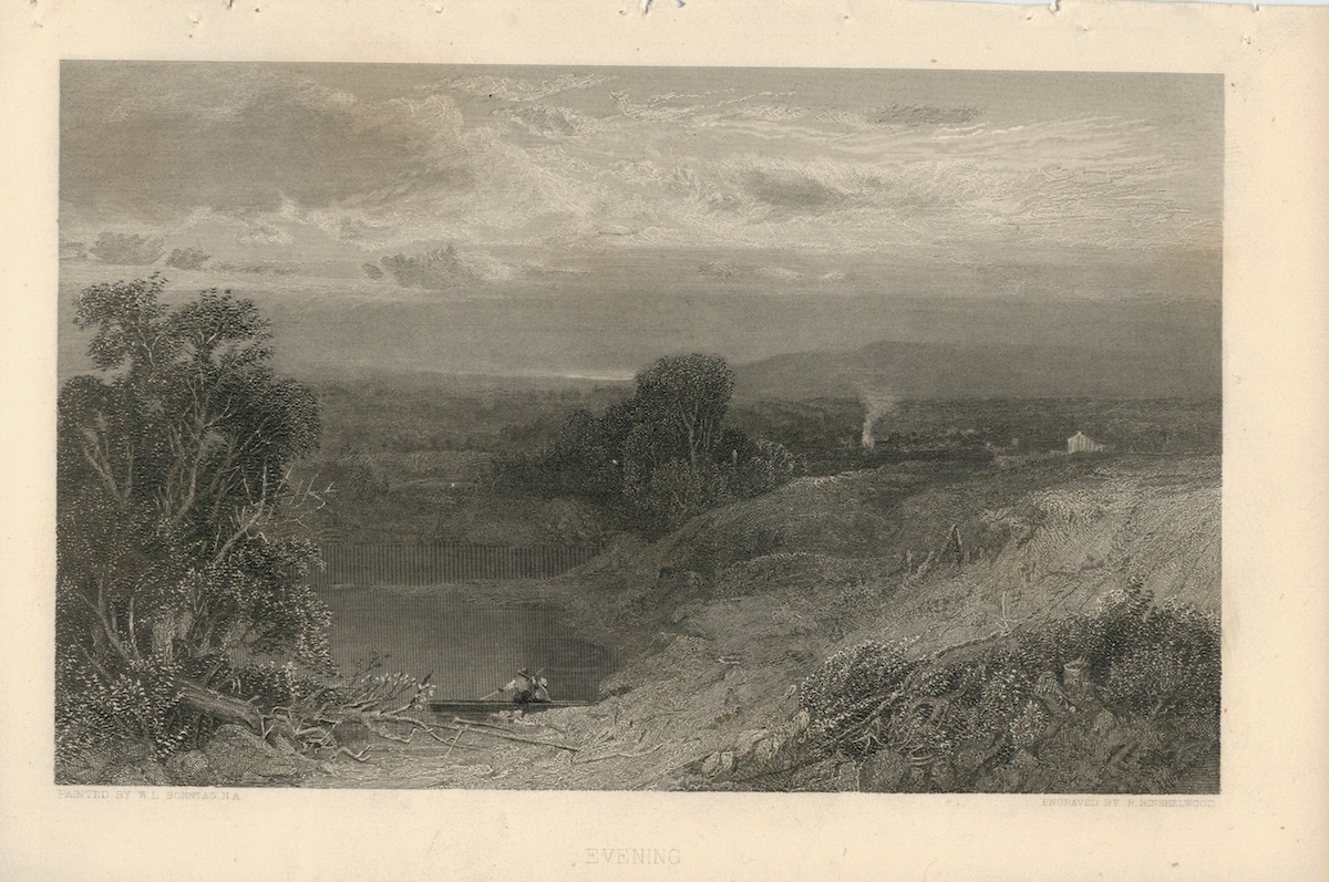 Antique Engraving Print, Evening, 1840 ca., 22,6 x 15 cm. Engraved by Hinshelwood.