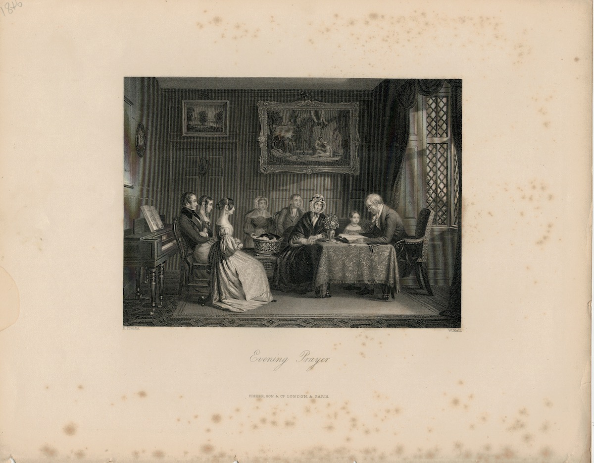 Antique Engraving Print, Evening Prayer, 1840, 26,8 x 21,4 cm, W. Holl, Fisher & Son.