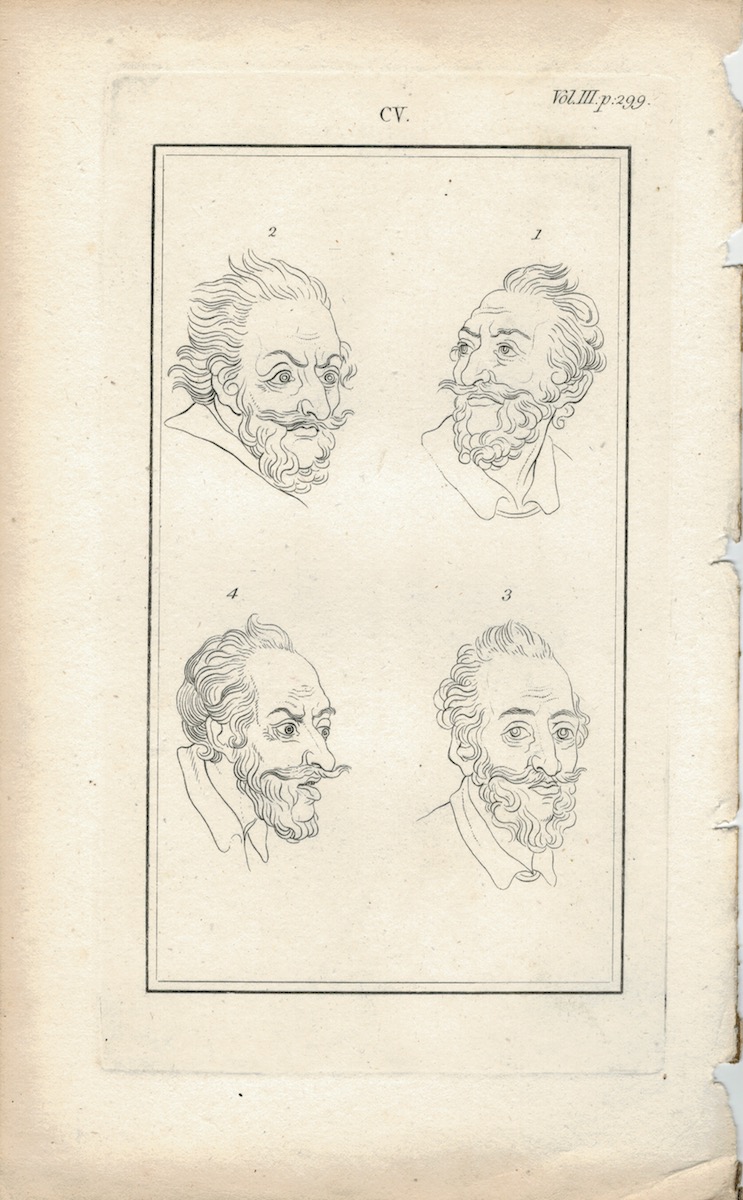 Antique Engraving Print, Face, 1785 ca., credit Antiche Curiosità©