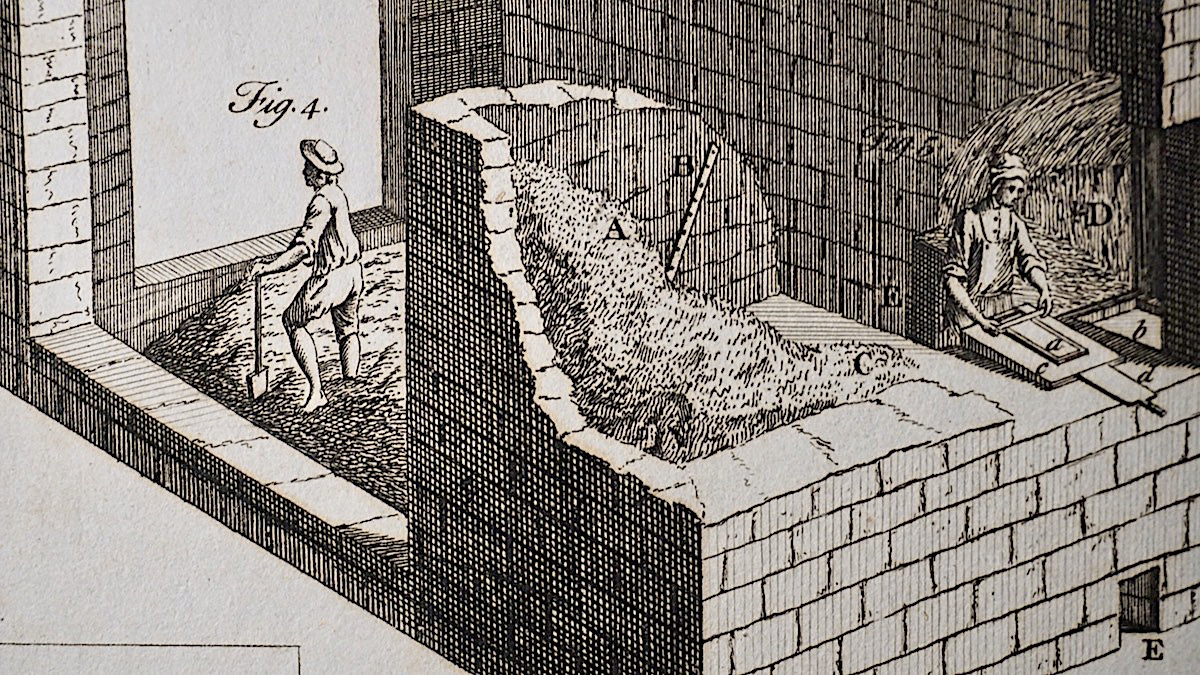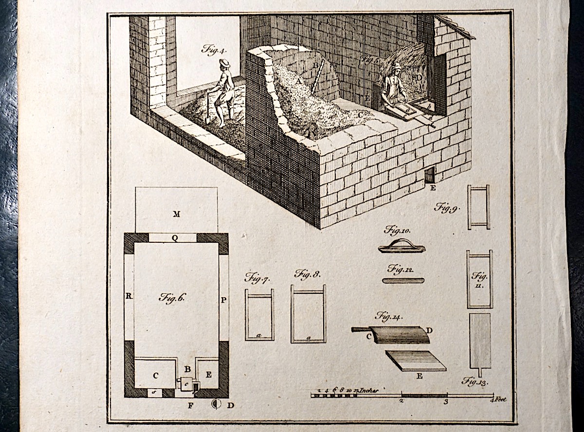 Antique Engraving Print, Facing Brick-making, 1765, credit Antiche Curiosità©