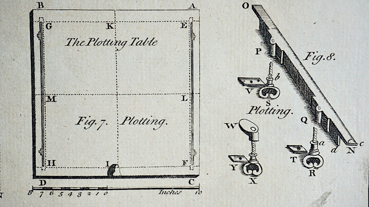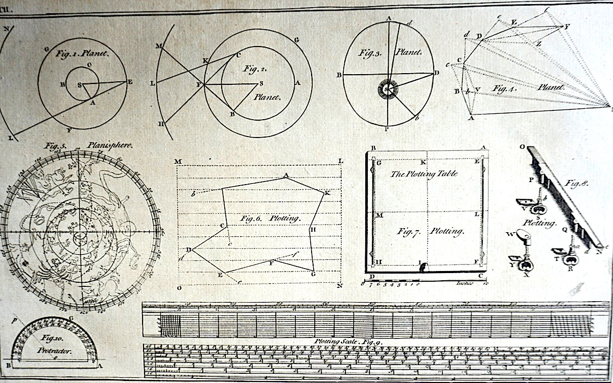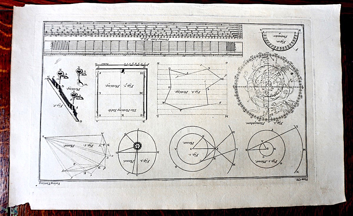 Antique Engraving Print, Facing Plotting, 1765, plate CII, cm 36 x 22, from Complete Dictionary of Arts and Sciences, 1765. Rare.