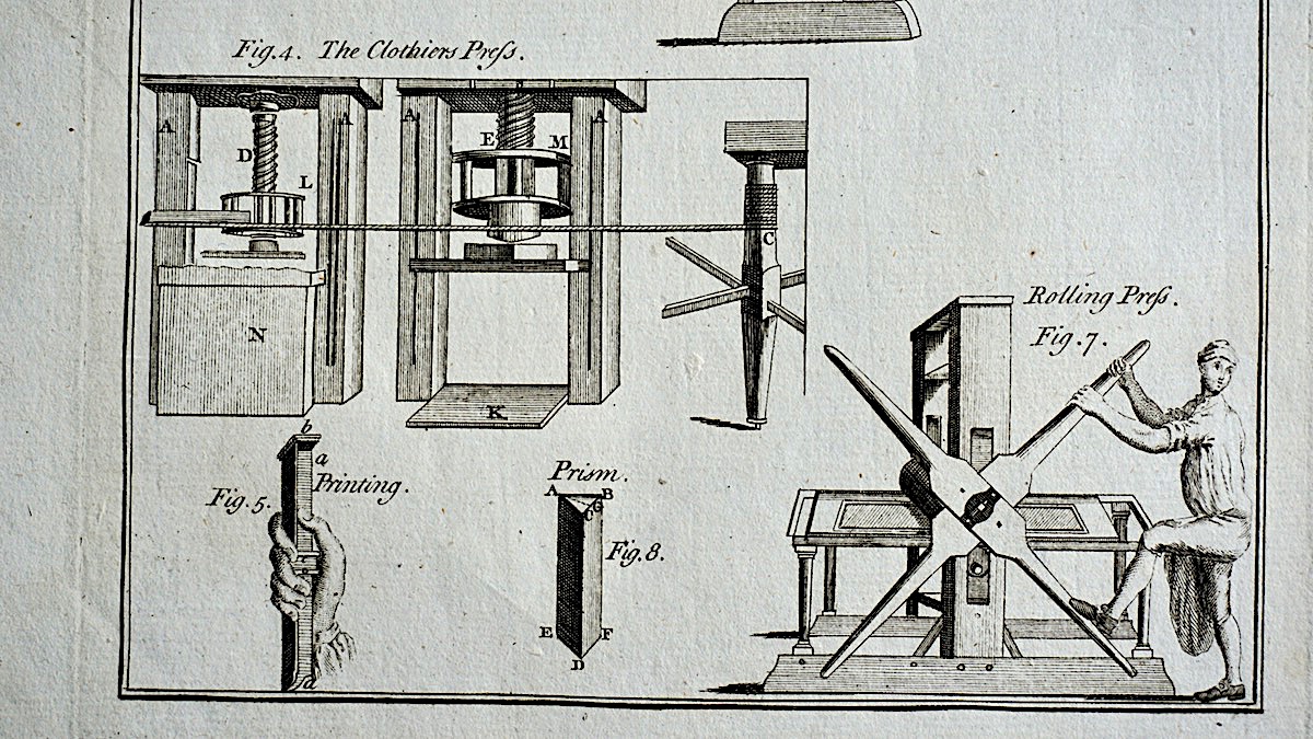 Antique Engraving Print, Facing Press, 1765, (detail), credit Antiche Curiosità©