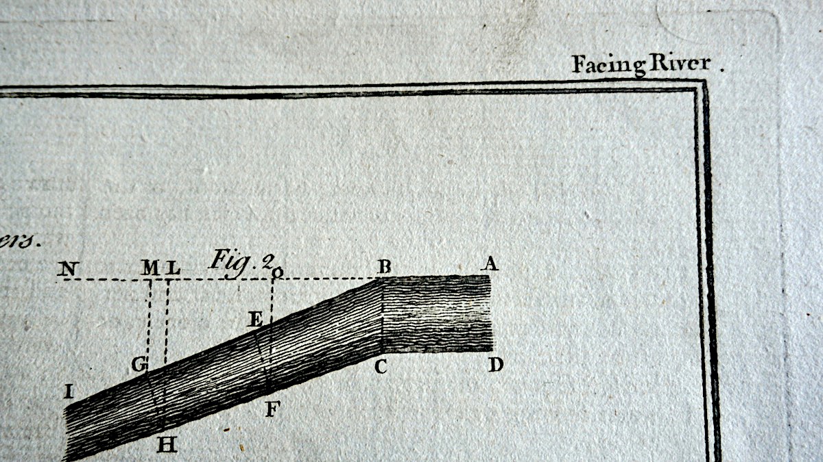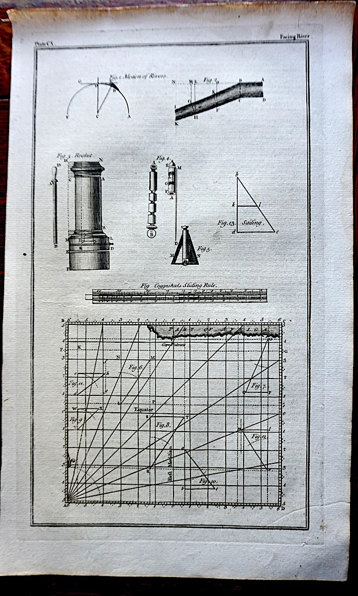Antique Engraving Print, Facing River, 1765, plate CX, cm 36 x 22, from Complete Dictionary of Arts and Sciences, 1765. Rare.
