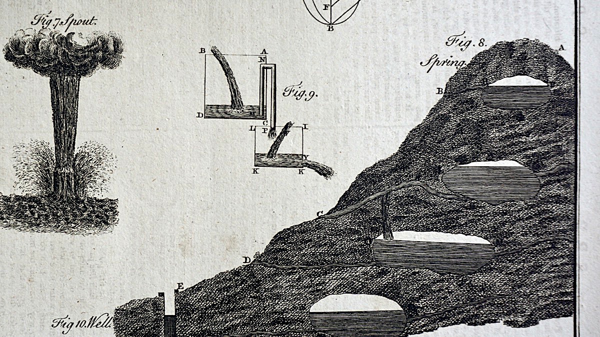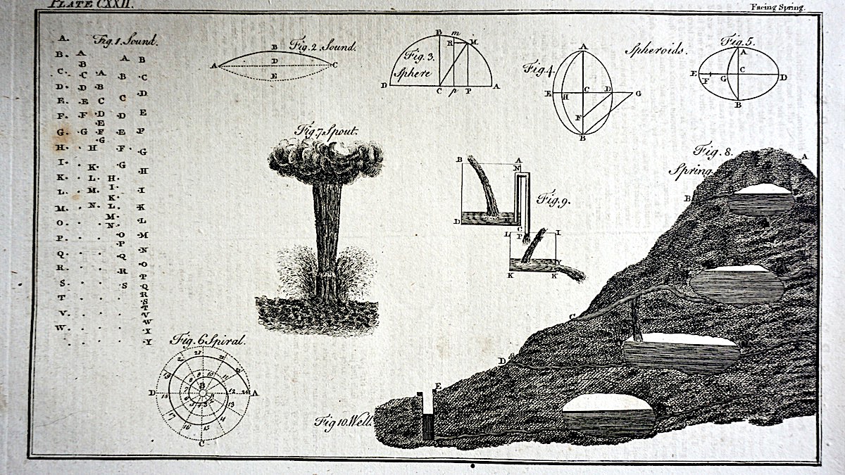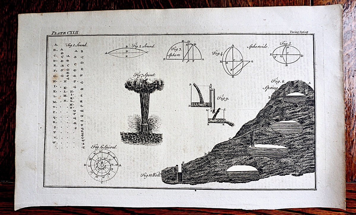 Antique Engraving Print, Facing Spring, 1765, plate CXXII, cm 36 x 22, from Complete Dictionary of Arts and Sciences, 1765. Rare.