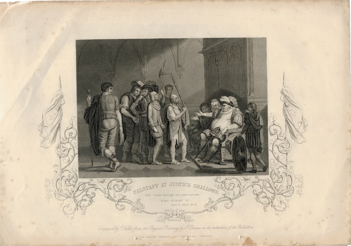 Antique Engraving Print, Falstaff at Justice Shallows, 1837 ca.
