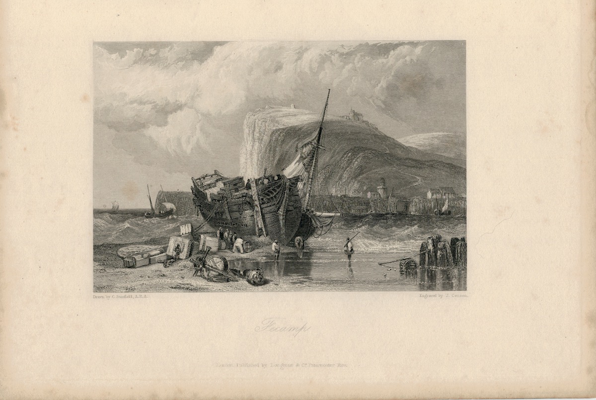 Antique Engraving Print, Fecamp, 1836, engraved by J. Cousen, 23 x 16 cm.