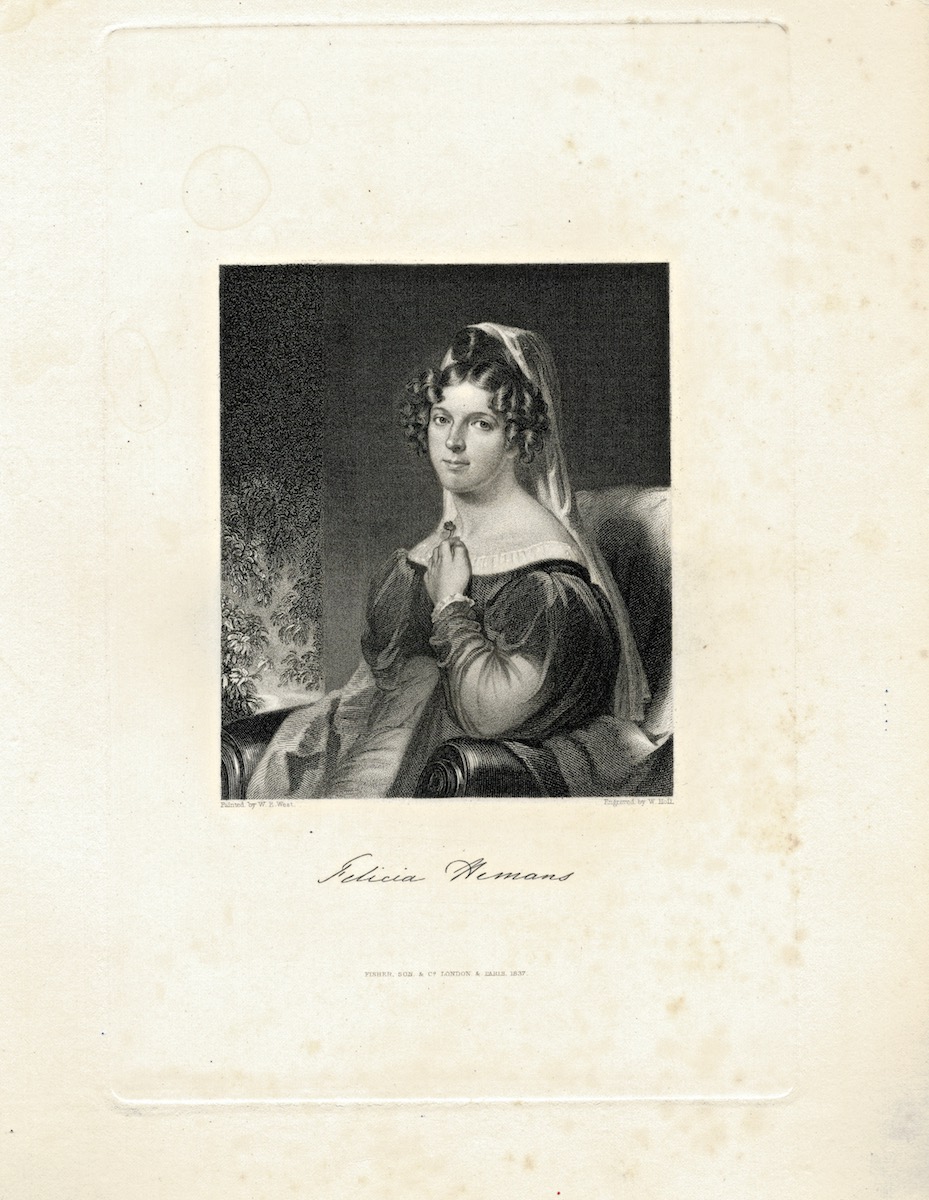 Antique Engraving Print, Felicia Hemans, 1837