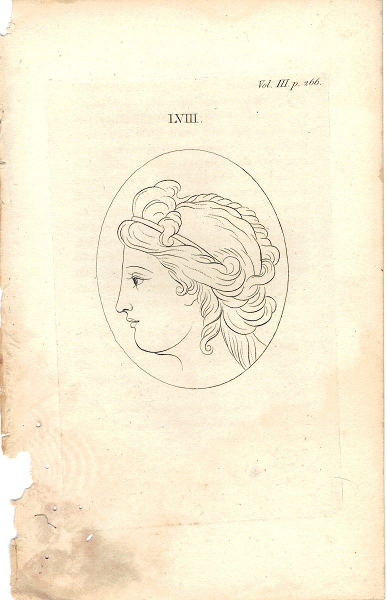 Antique Engraving Print, Female Portrait, 1750, credit Antiche Curiosità©