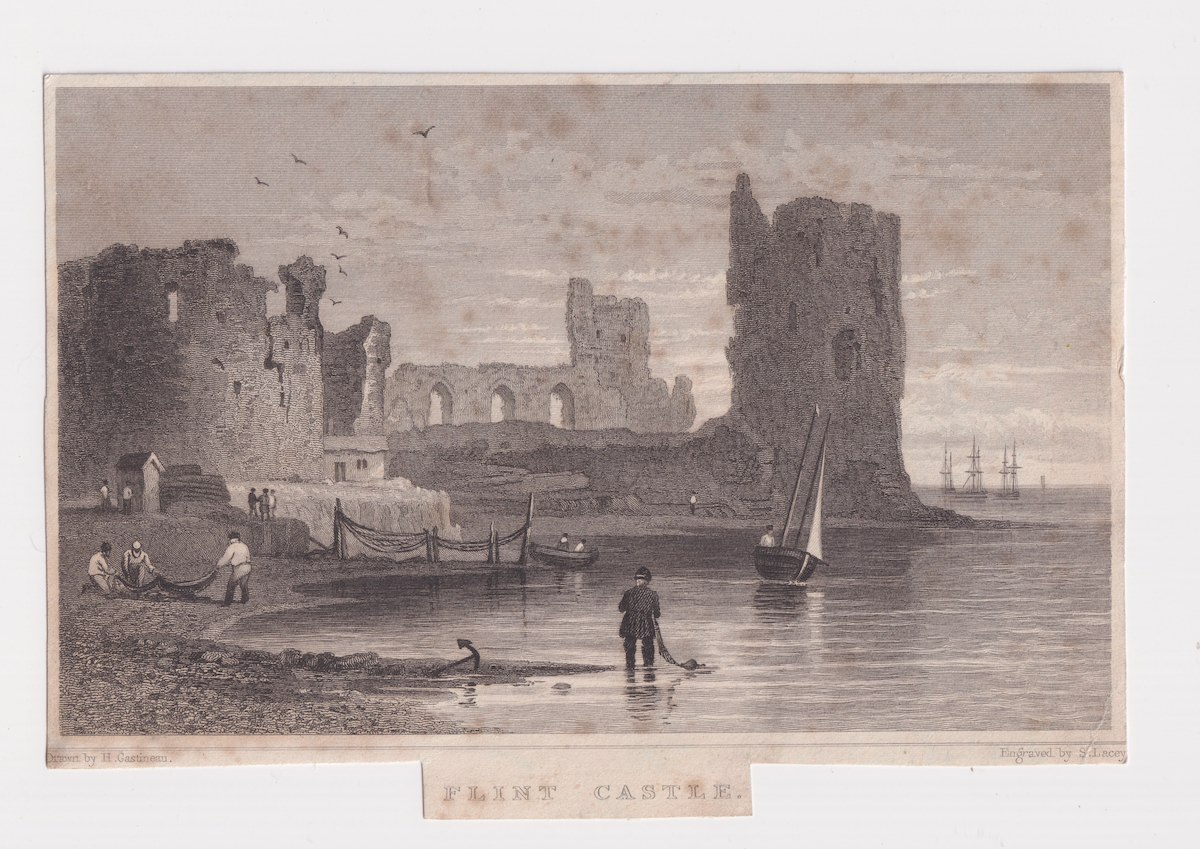 Antique Engraving Print, Flint Castel, 1830, credit Antiche Curiosità©
