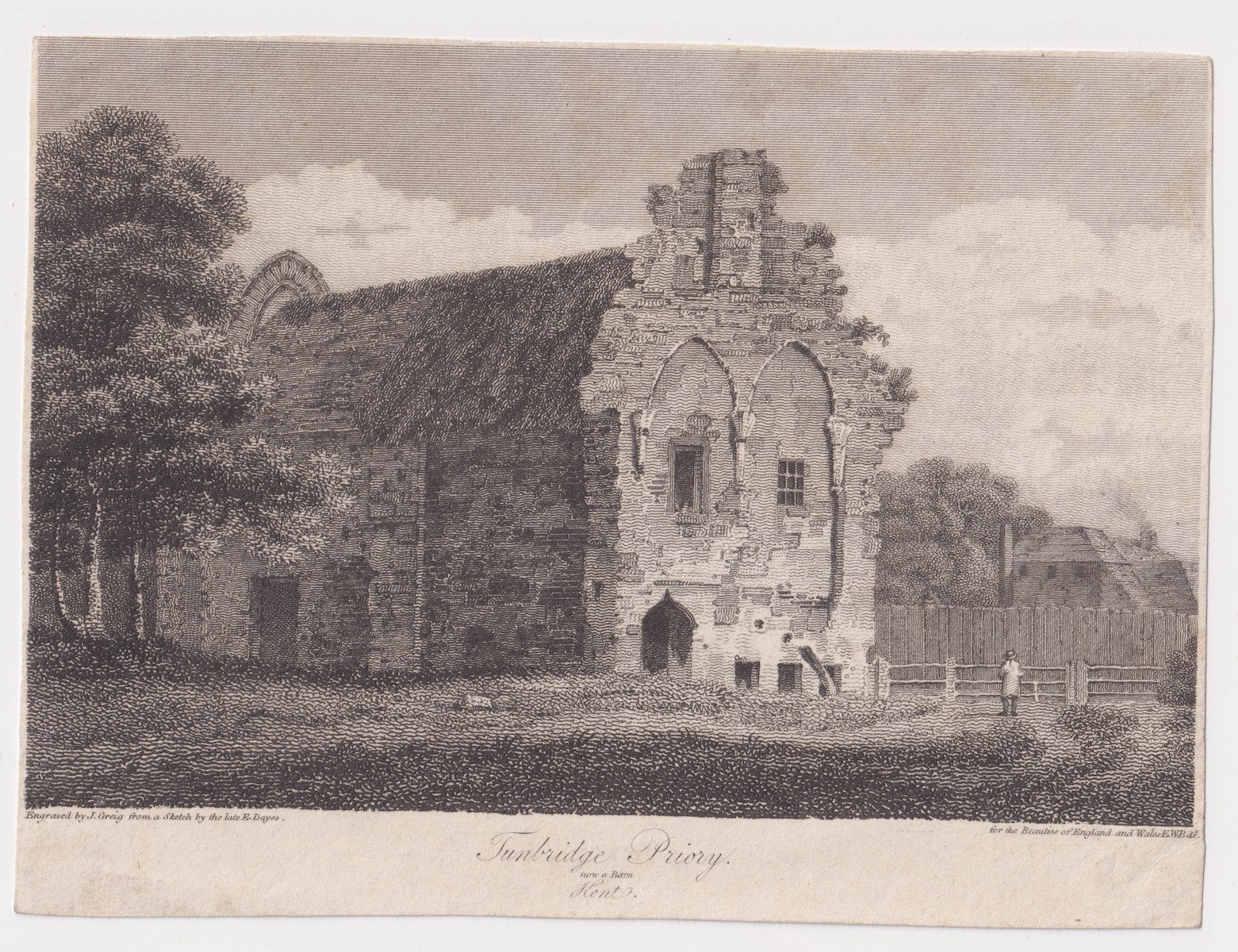 Antique Engraving Print, Funbridge Priory, 1810 ca. 15.5 x 11.5 cm.