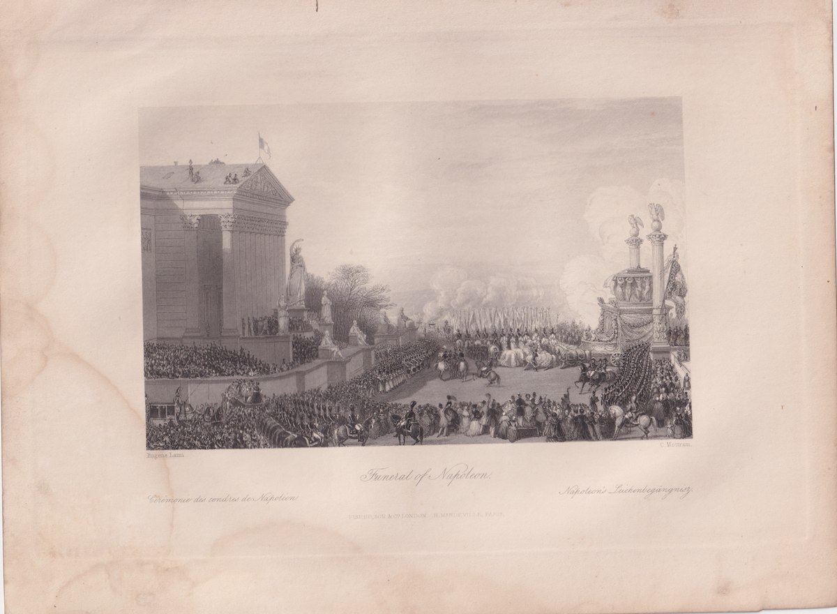 Antique Engraving Print, Funeral of Napoleon, 1840, 27,5 x 20,1 cm. Engraved by C. Mottram.