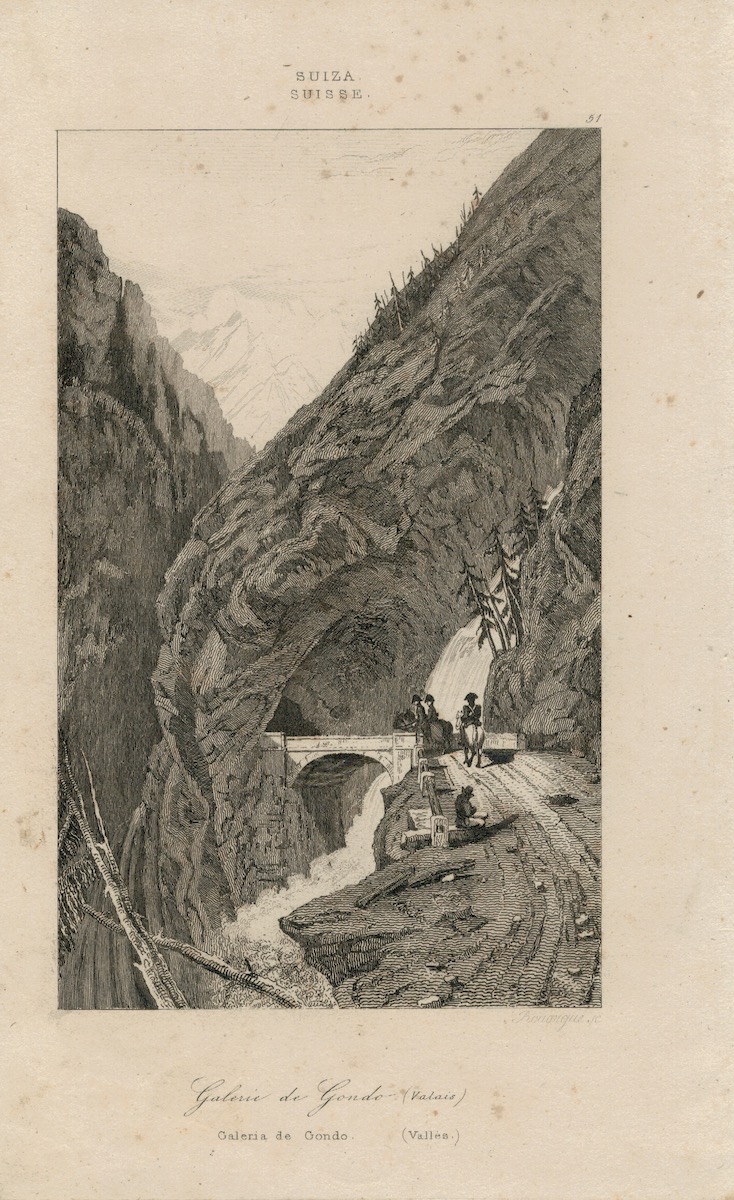 Antique Engraving Print, Galerie de Gondo (Valais), 1830, credit Antiche Curiosità©