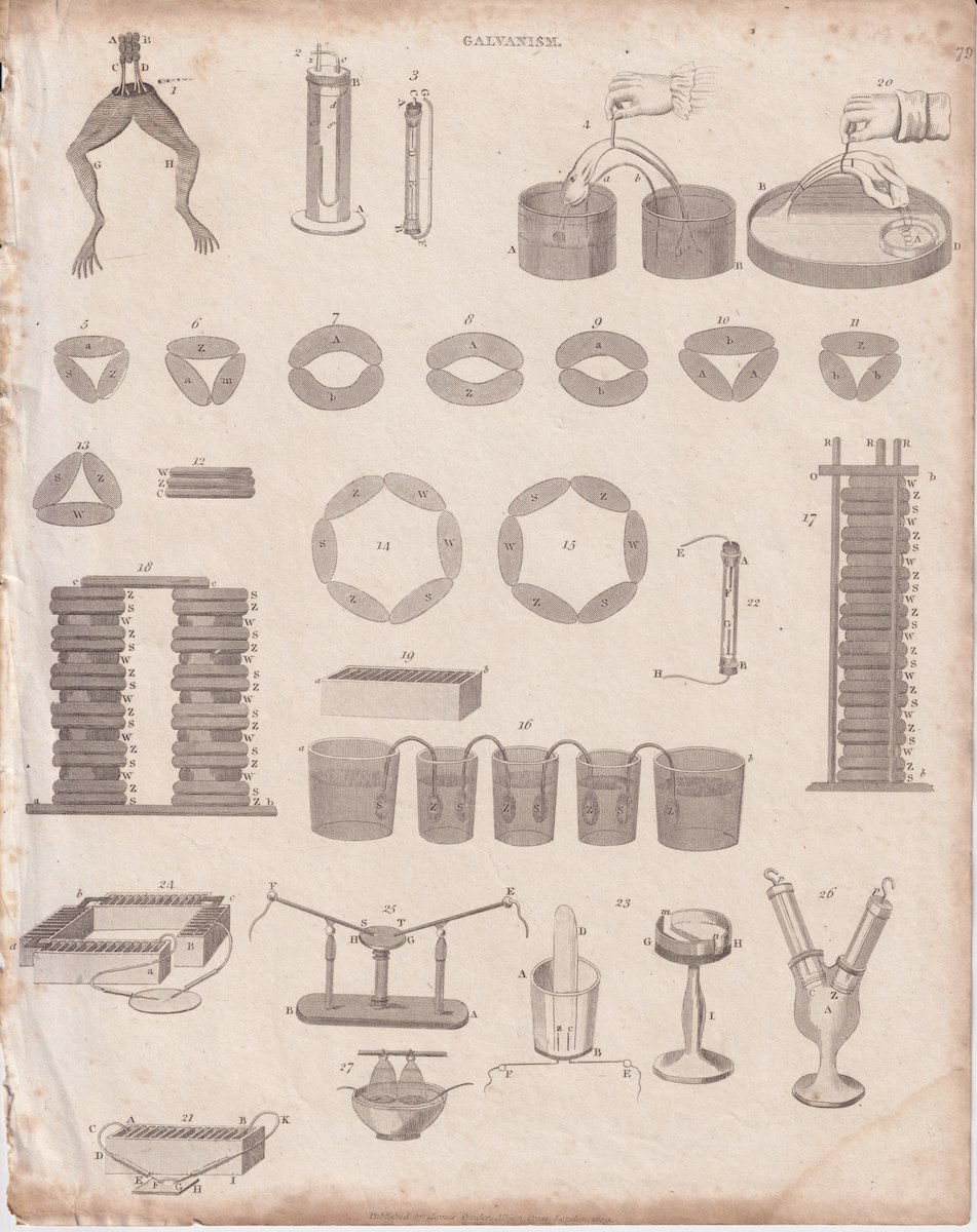 Antique Engraving Print, Galvanism, 1815, credit Antiche Curiosità©