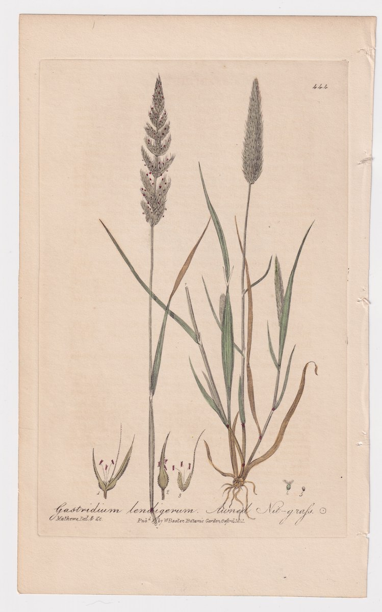 Antique Engraving Print, Gastridium lendigerum, 1841, credit Antiche Curiosità©