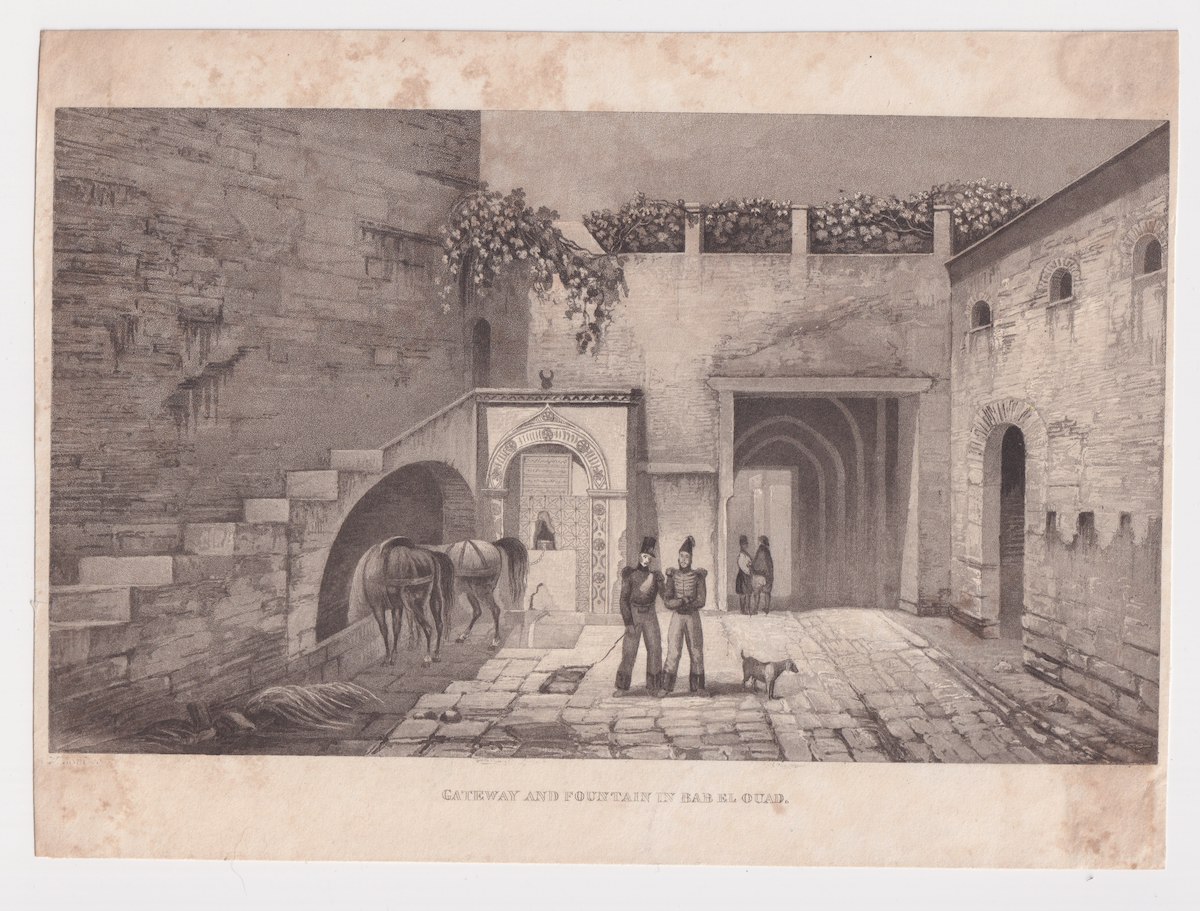 Antique Engraving Print, Gateway and Fountain in Bab El Ouad, 1820, Credit Antiche Curiosità©