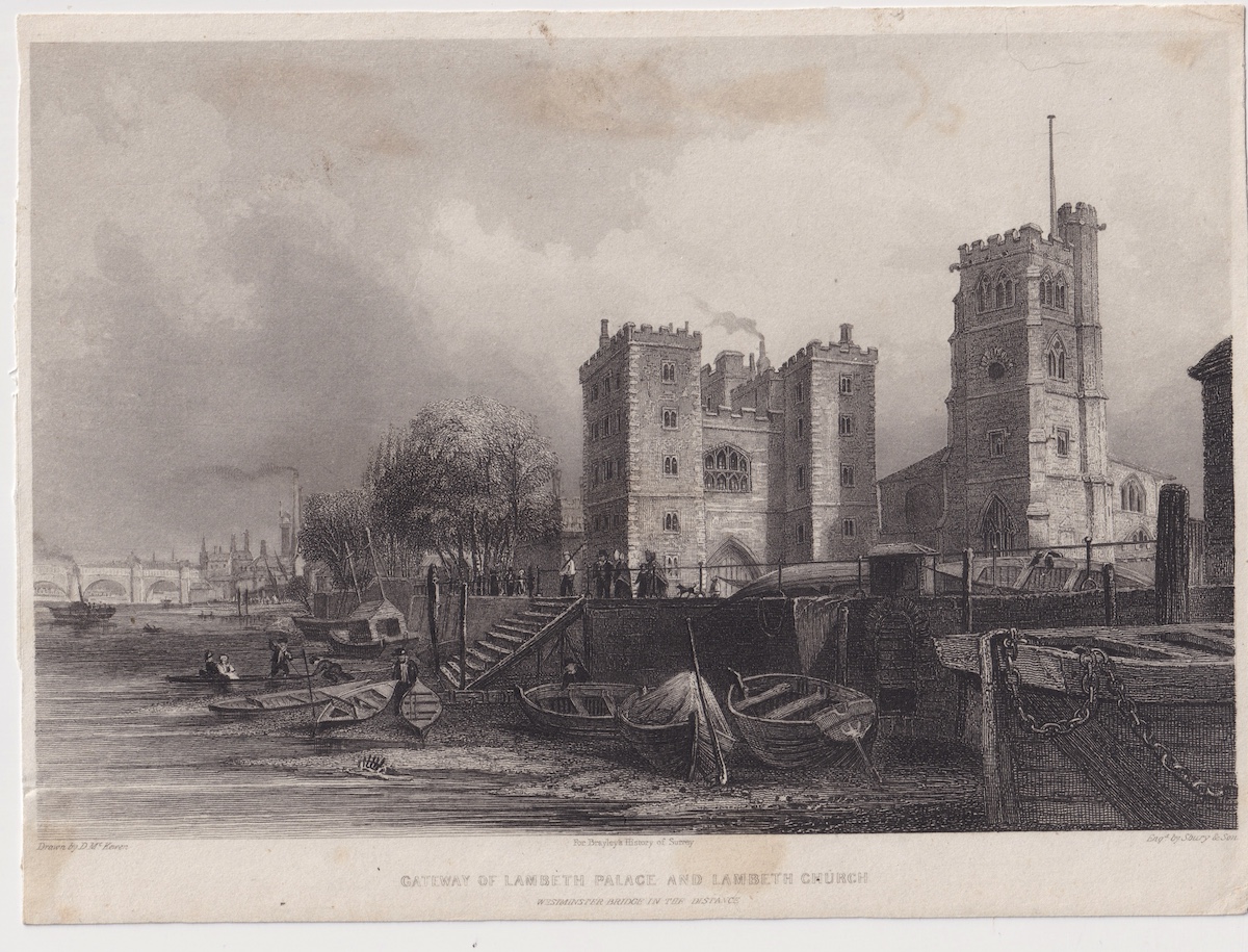 Antique Engraving Print, Gateway of Lambeth Palace, 1850, credit Antiche Curiosità©