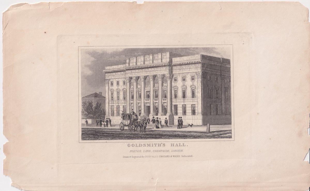 Antique Engraving Print, Goldsmith’s Hall, 1830, credit Antiche Curiosità©