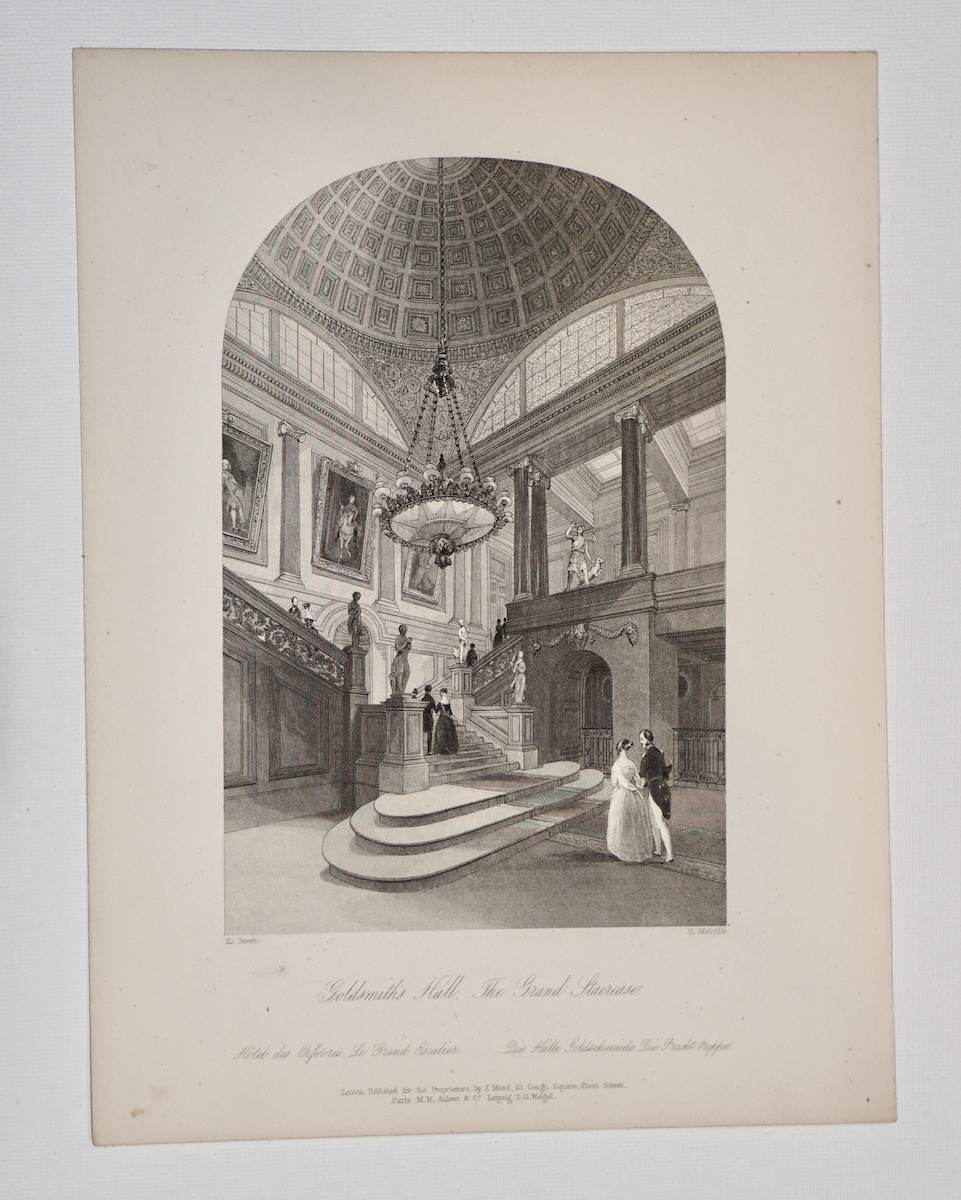 Antique Engraving Print, Goldsmith Hall, 1840, credit Antiche Curiosità©