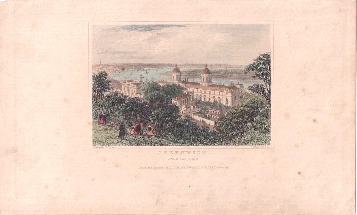 Antique Engraving Print, Greenwich from the Park, Dugdales, 1840, credit Antiche Curiosità©