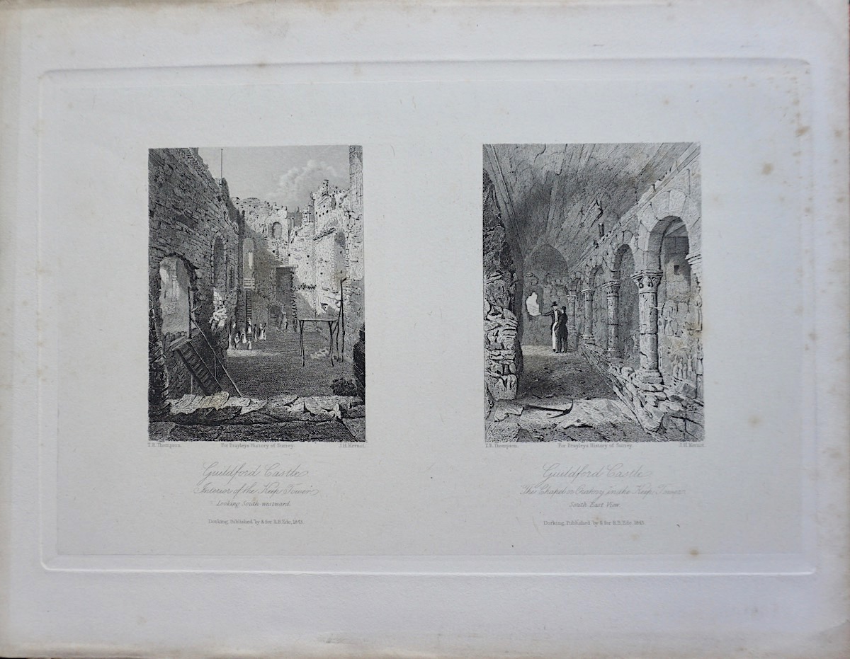 Antique Engraving Print, Guildford Castle, 1843, 29,5 x 23 cm. Engraved by J. H. Kernot.