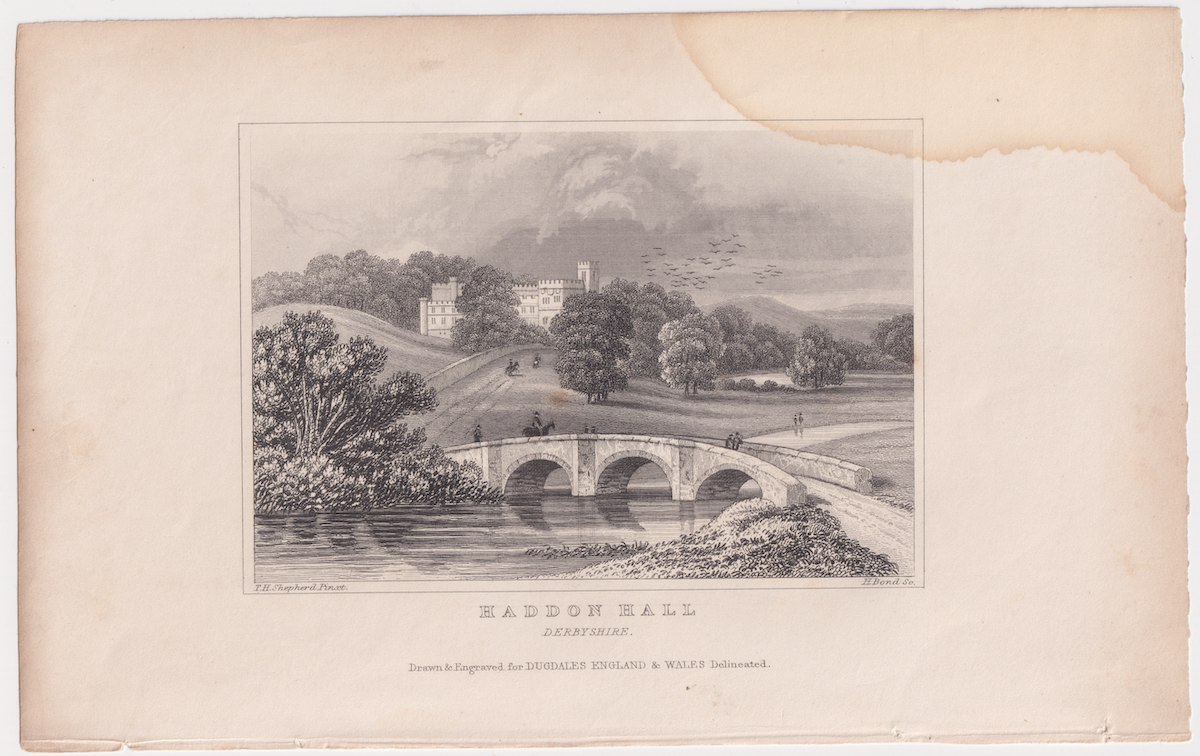 Antique Engraving Print, Haddon Hall, Derbyshire, 1830, credit Antiche Curiosità©