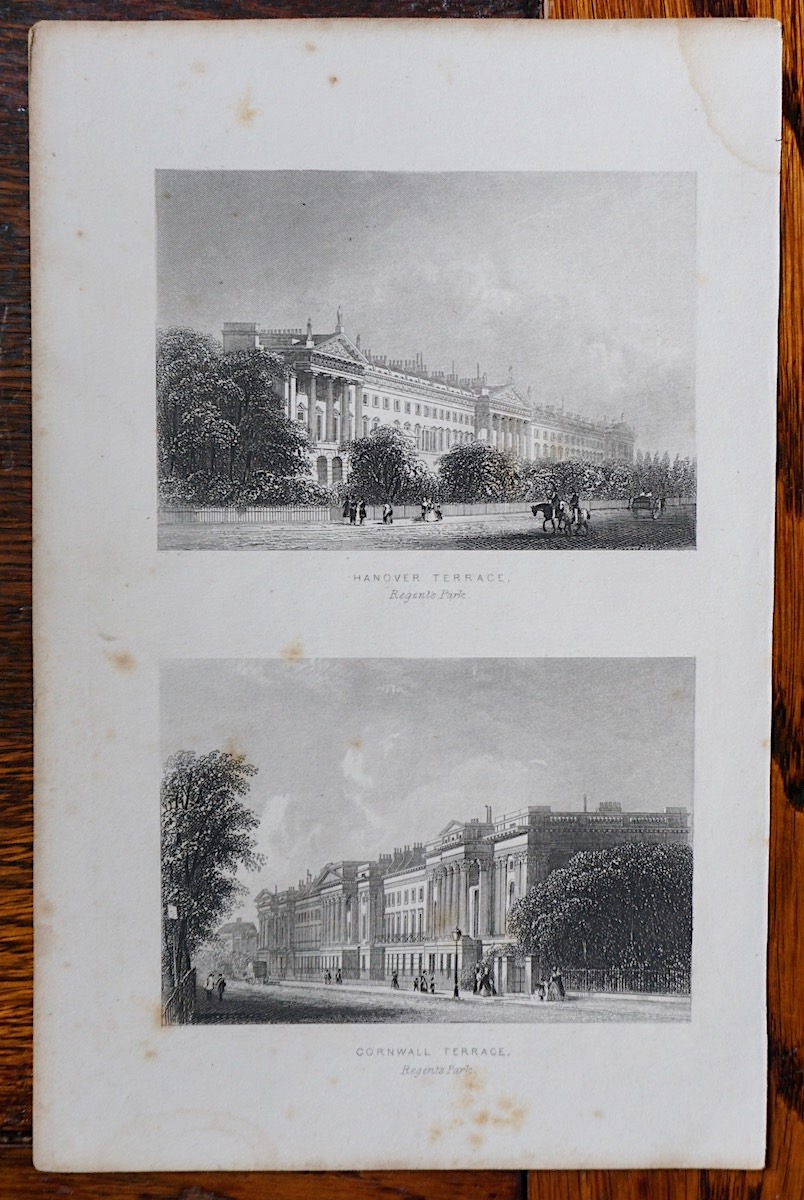 Antique Engraving Print, Hanover Terrace; Cornwall Terrace, 1850, 18,3 x 11,8 cm.