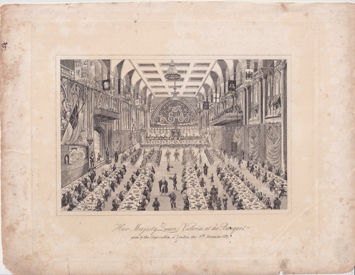 Her Majesty Queen Victoria at the Banquet given by the Corporation of London, the 9th of November 1837, 27 x 21 cm.