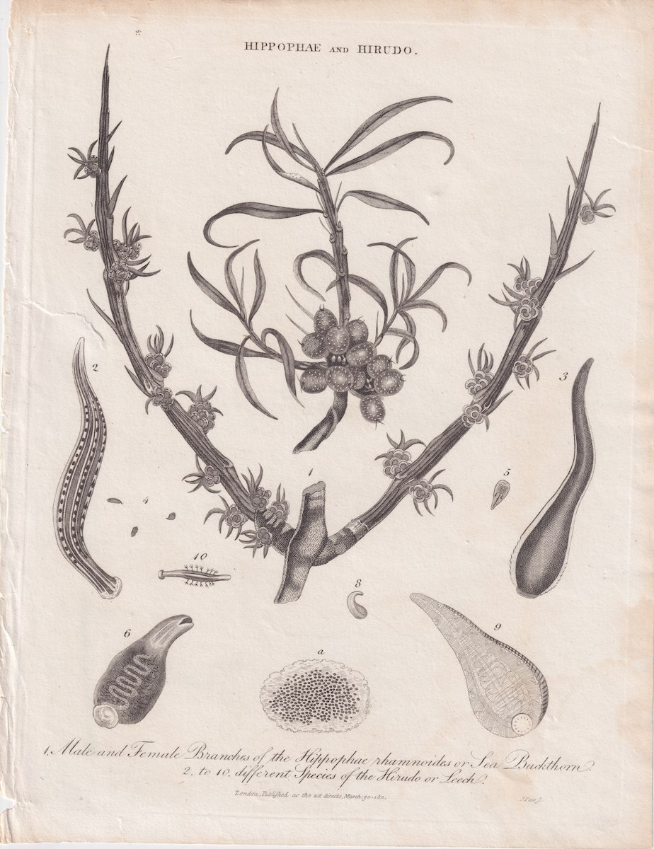 Antique Engraving Print, Hippophae and Hirudo, 1811