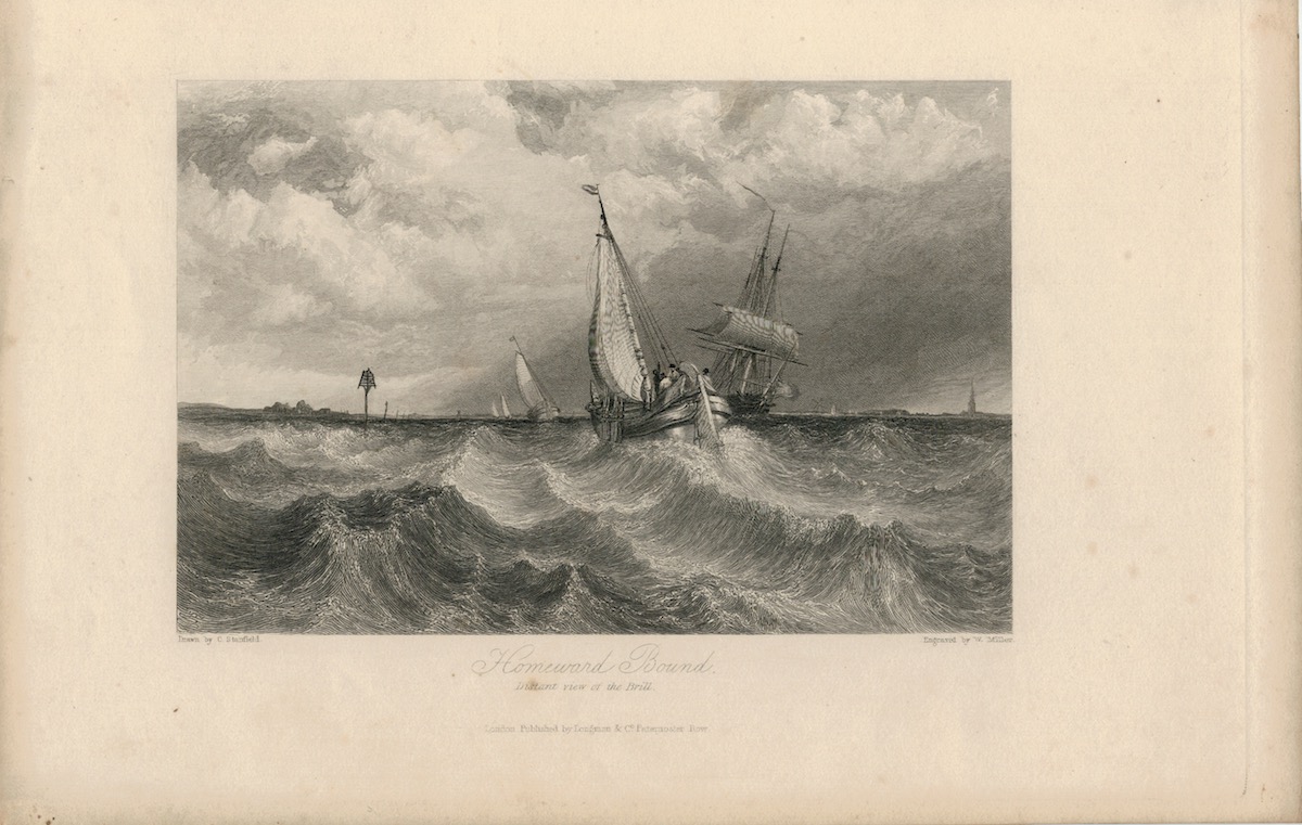 Antique Engraving Print, Homeward Bound, 1836