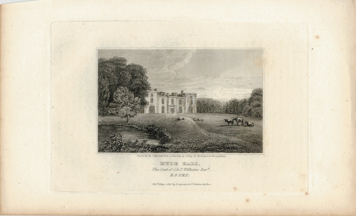 Antique Engraving Print, Hyde Hall, Essex, 1819, credit Antiche Curiosità©